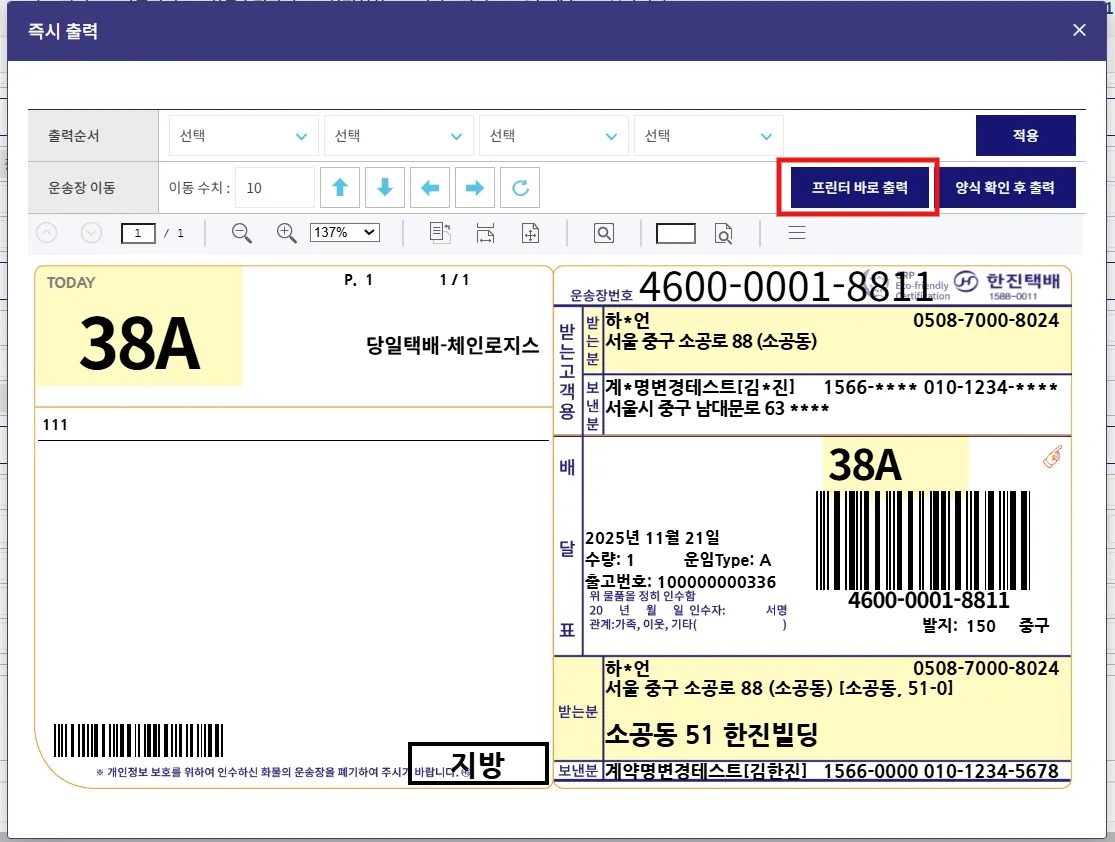 ※ 라벨이 없다면 A4 용지로 인쇄하시면 됩니다.