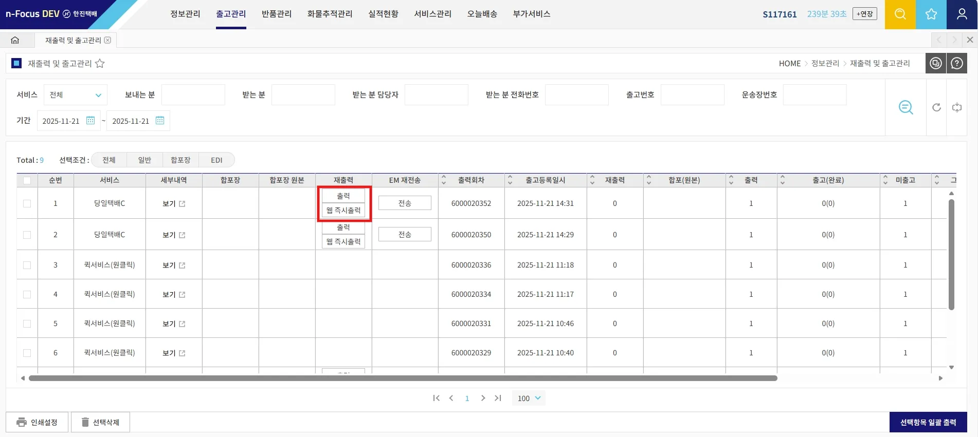 출고등록 가능시간은 당일 00시~11시 입니다.